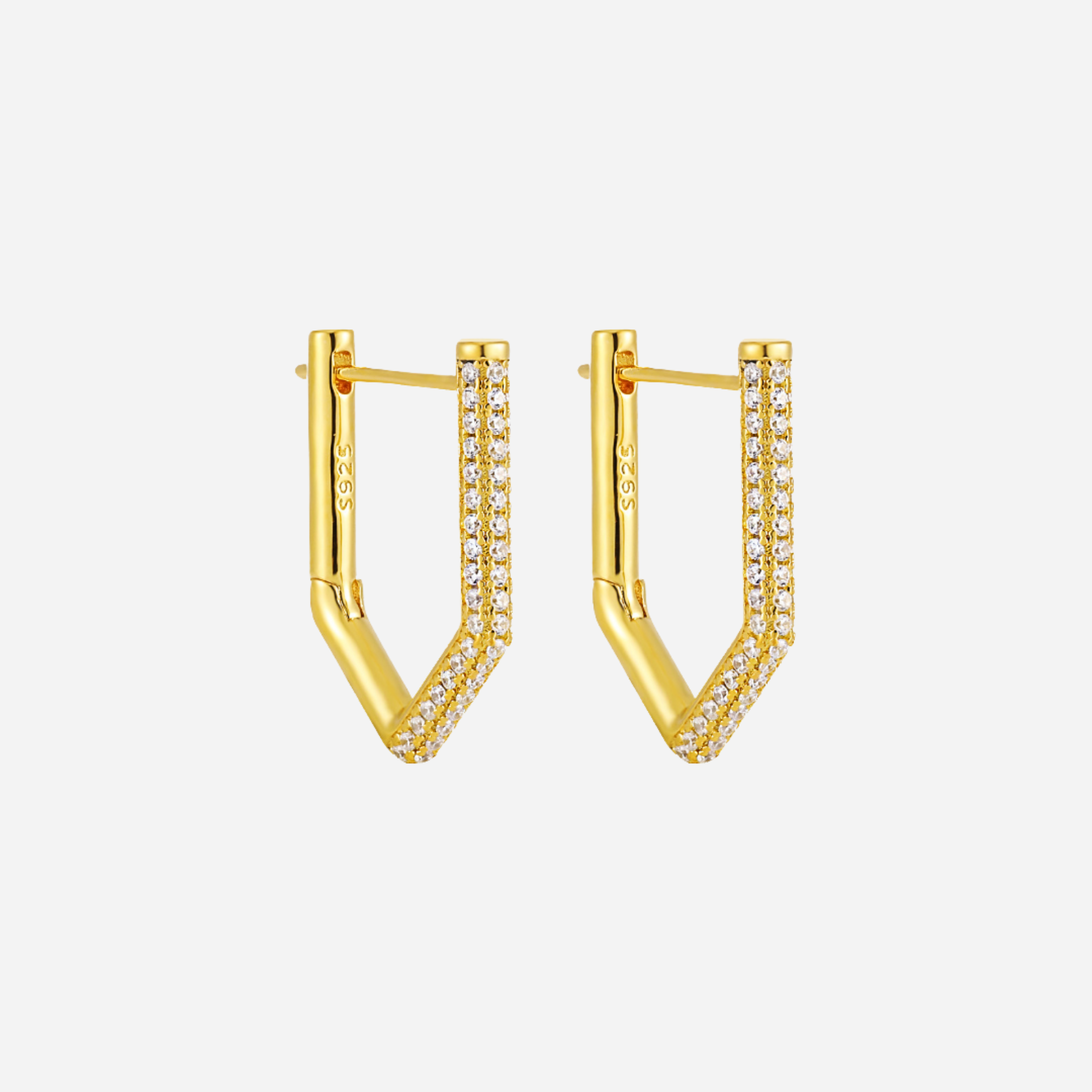 ICED V-SHAPED HOOP EARRINGS - GOLD