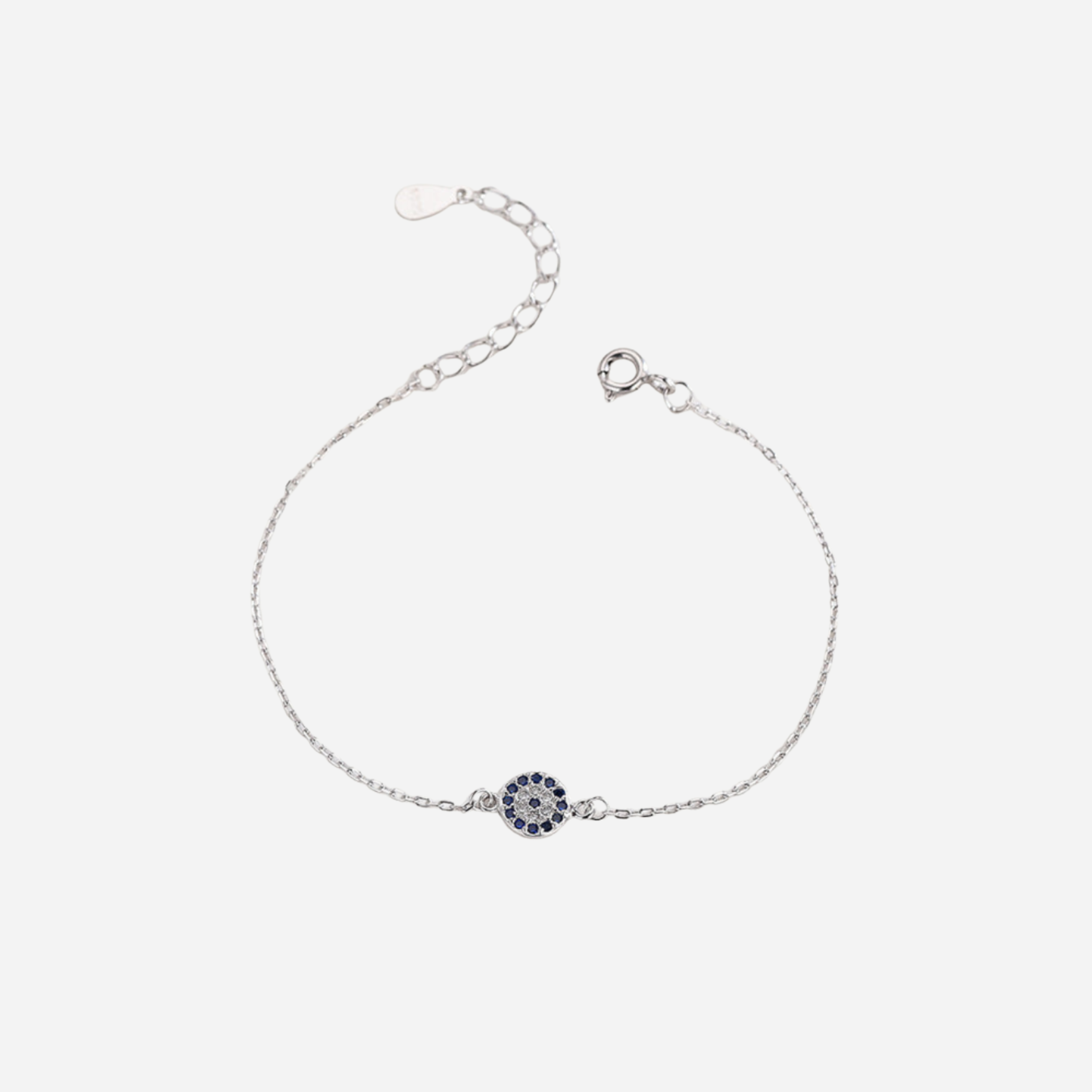 ICED ROUND EVIL EYE PENDANT - SILVER