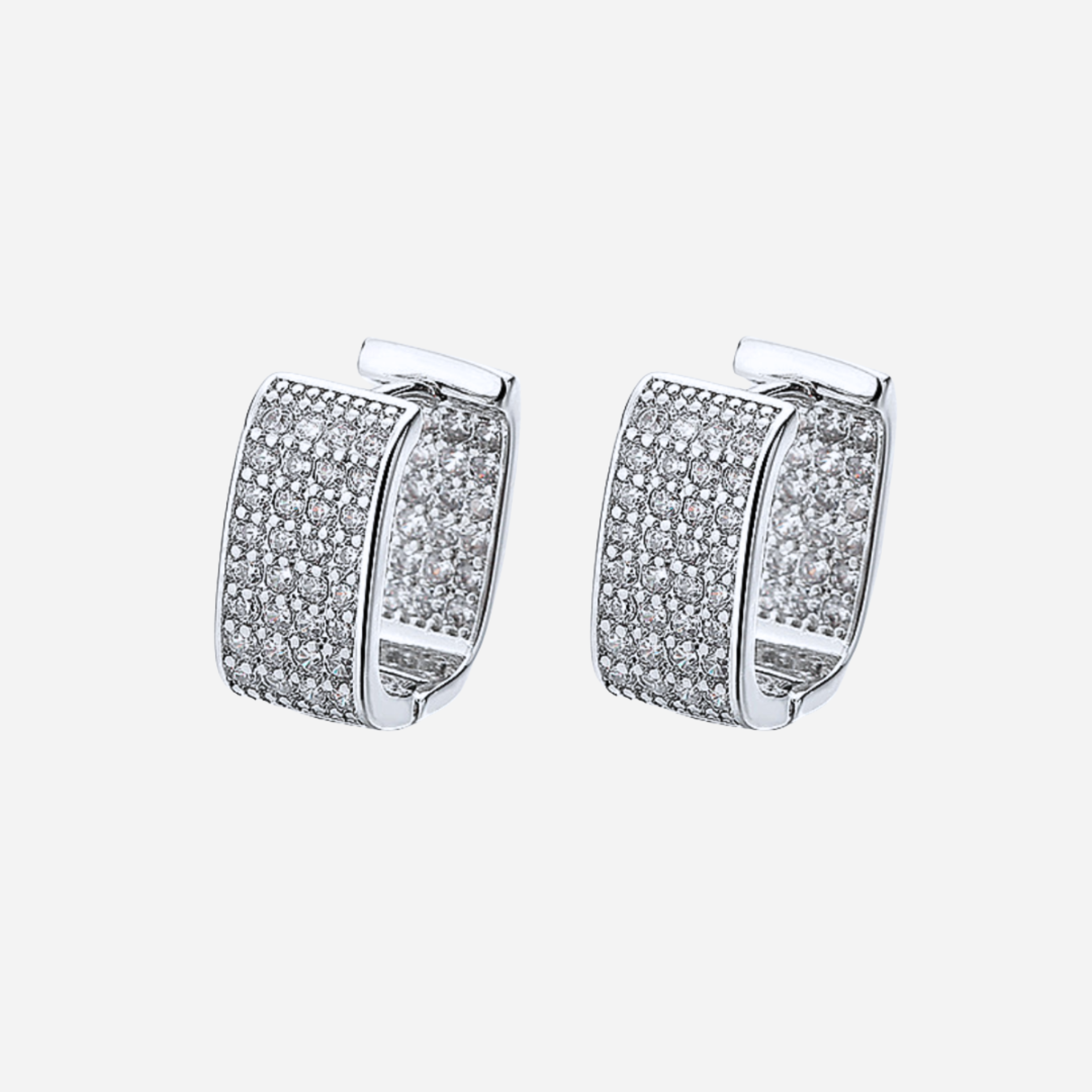 ICED HUGGIE HOOP EARRINGS - SILVER