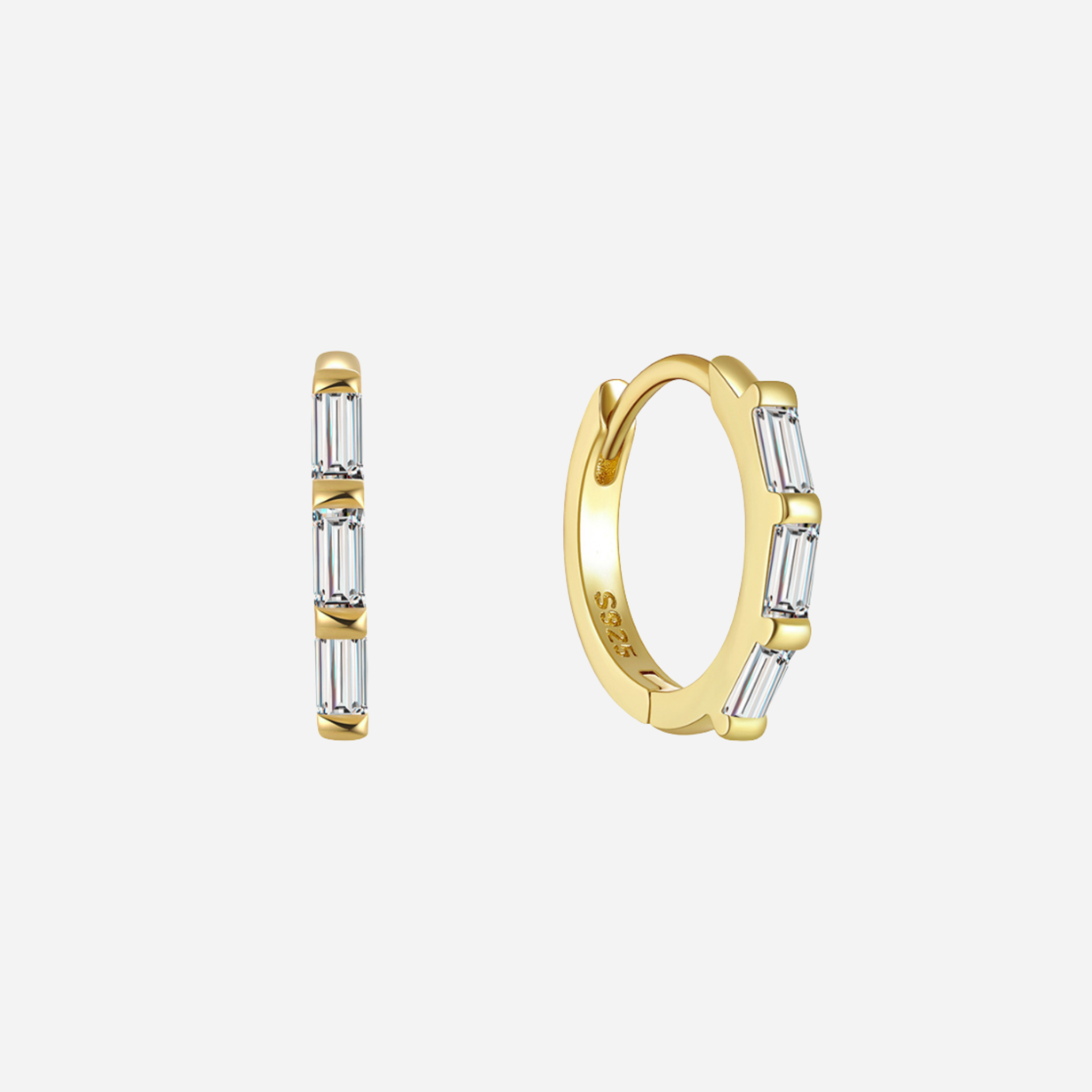 MINI CRYSTAL HUGGIE HOOP EARRINGS - GOLD