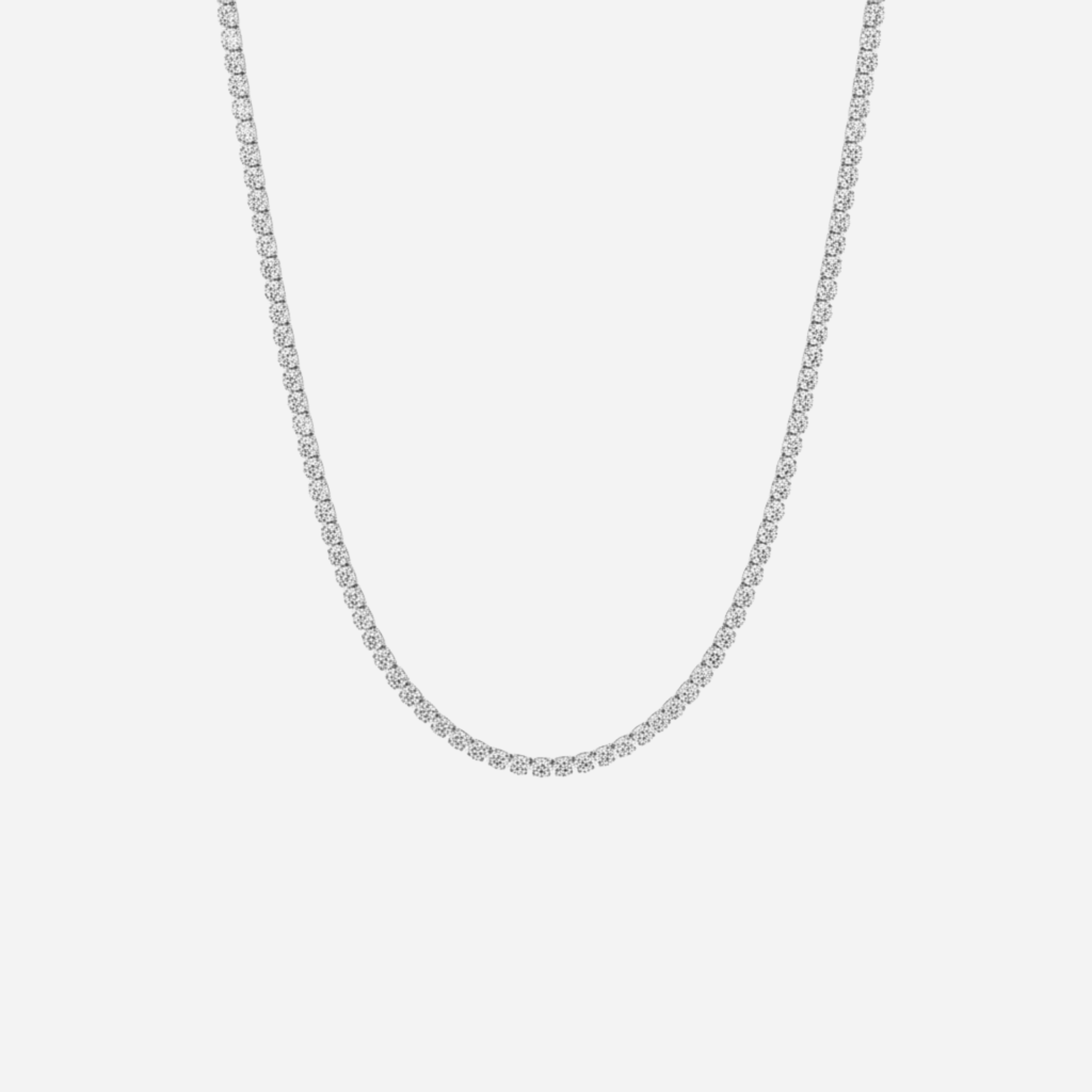 An icon of refined style. Our Classic 2mm Tennis Necklace features a continuous line of brilliant-cut cubic zirconia, each stone precisely set to maximise light and brilliance. Available in both gold and silver finishes, it’s a versatile piece that transitions effortlessly from day to night.